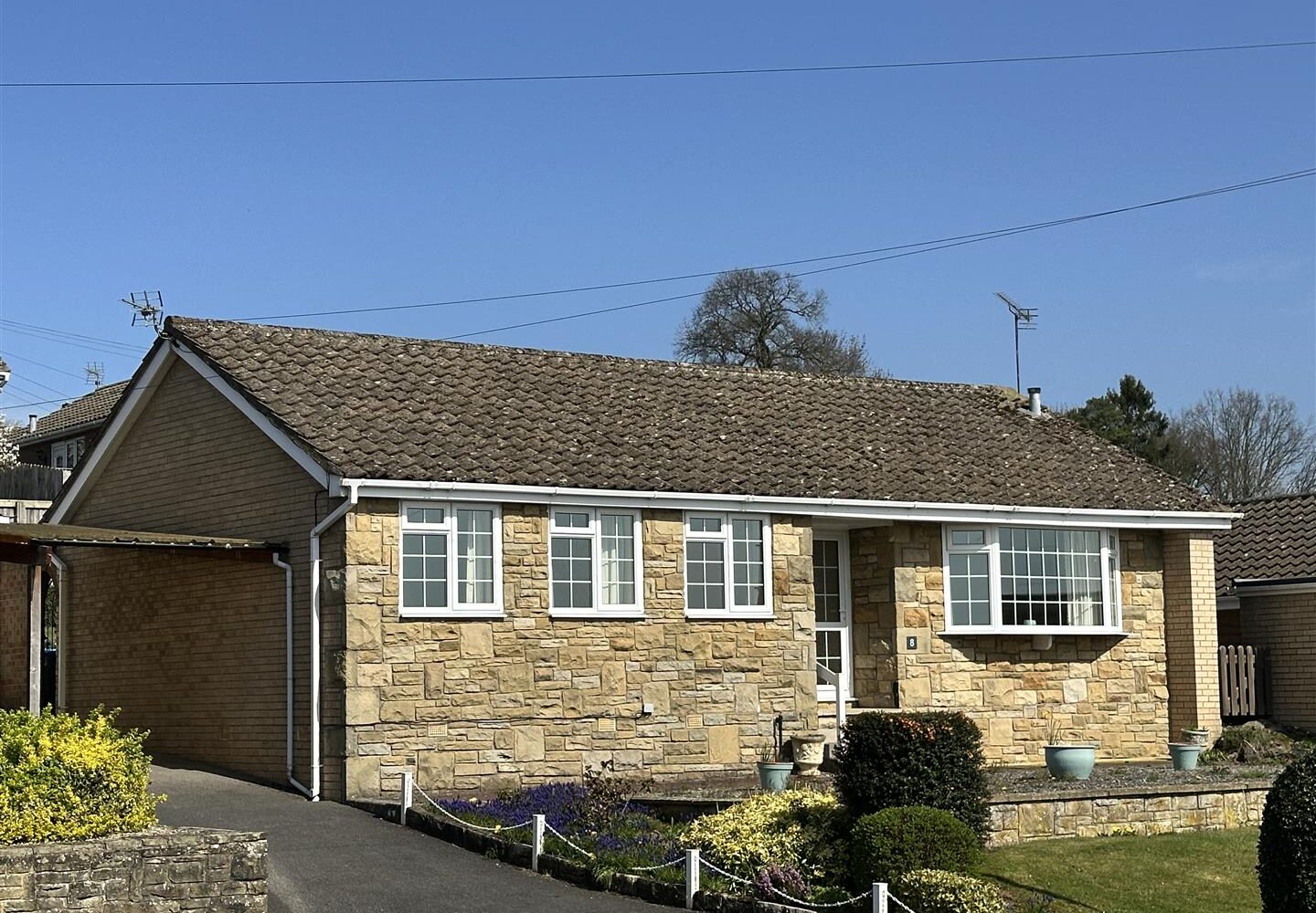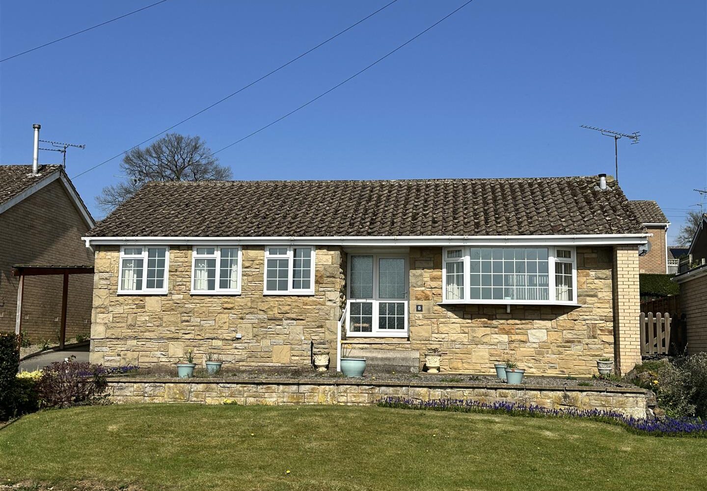 Number 8 Beech Drive is a stone fronted good sized bungalow in a small cul de sac position with slightly elevated mature rear gardens and is offered for sale having no onward chain. Having been well looked after during recent years we believe it now offers an excellent opportunity for someone to create a lovely home complete with three bedrooms, a generous lounge/dining room, fitted kitchen and modern bathroom with white suite and mains plumbed shower. Good length driveway allowing off road parking, carport, single garage, mains gas central heating and uPVC double glazing.